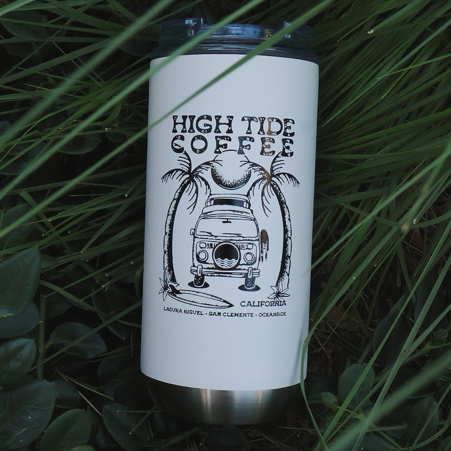 This premium, 16oz High Tide Coffee tumbler is a true celebration of our community, featuring original art by renowned local San Clemente artist Jake Wood of Snake Craft Designs. Jake's vibrant VW Bus beach scene design captures the laid-back, sun-soaked lifestyle of Southern California.